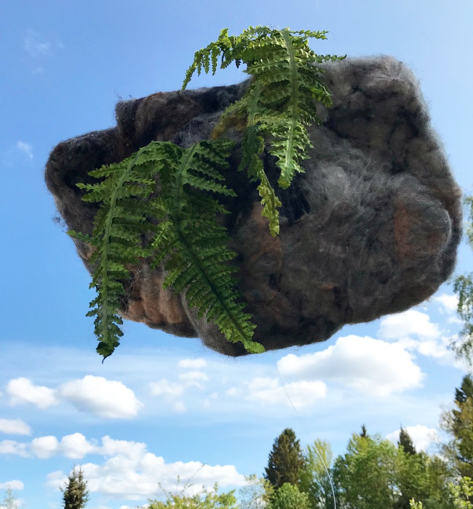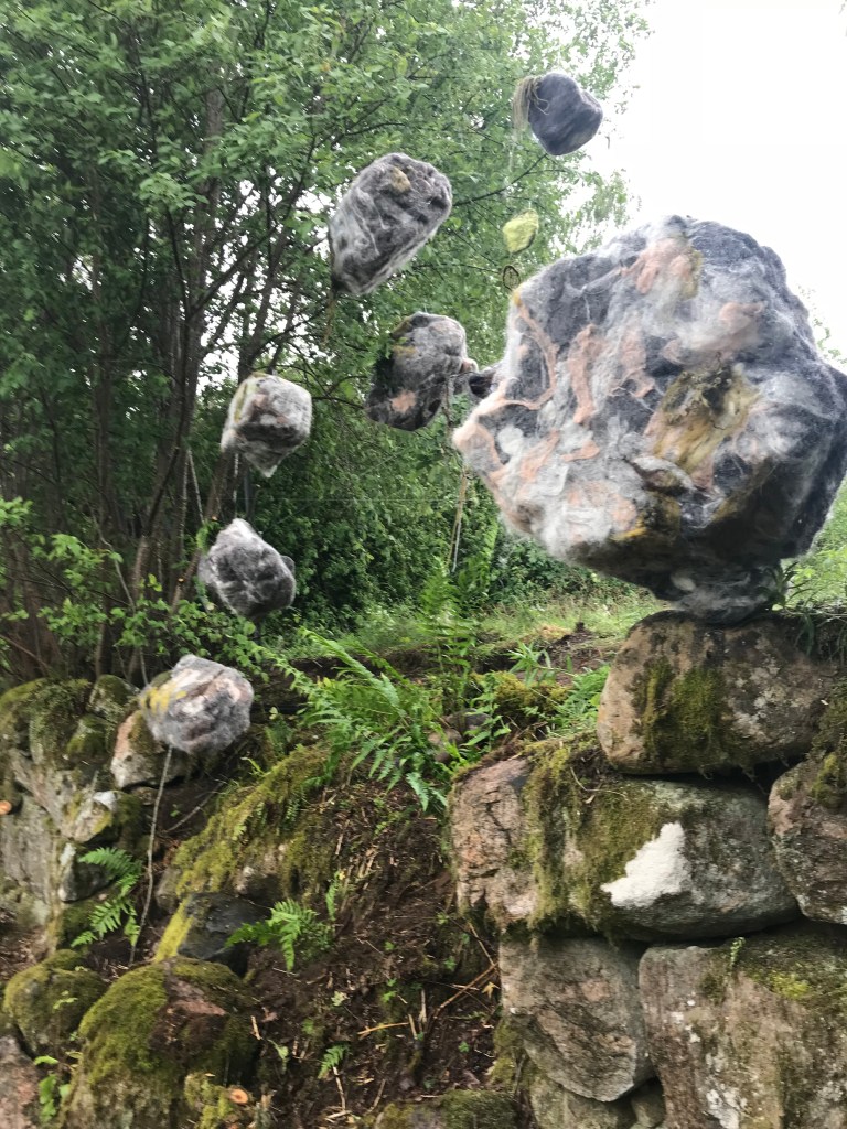 Light as a stone, Felted hovering stones, Collaboration with Agust Helgason