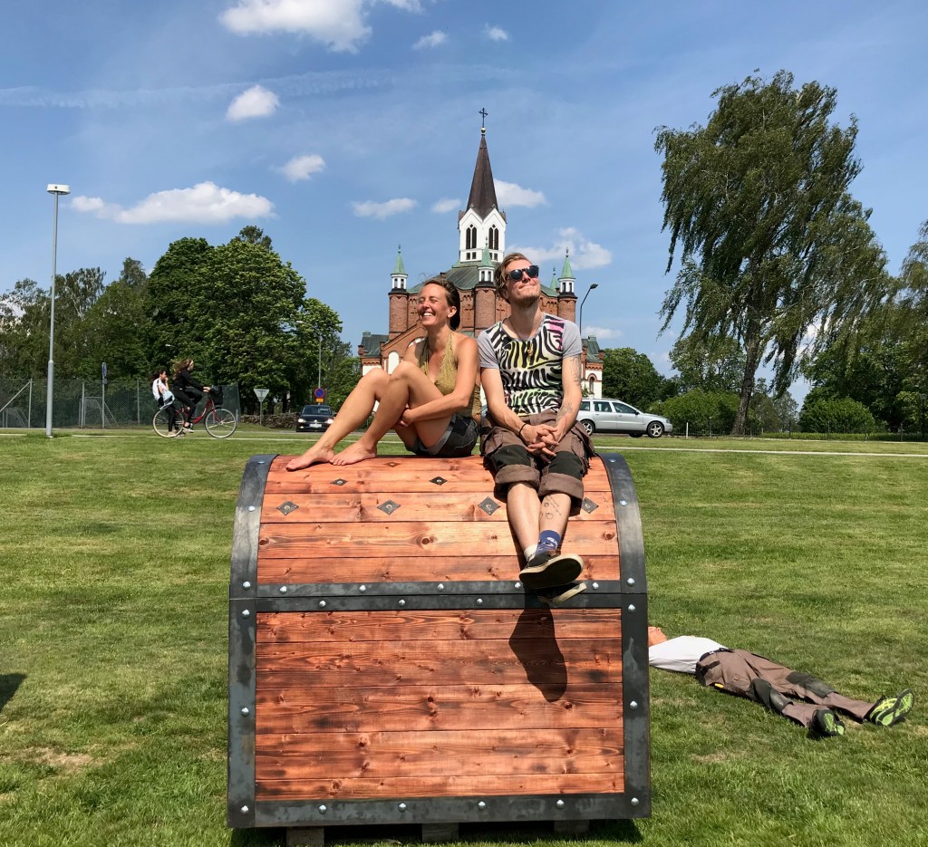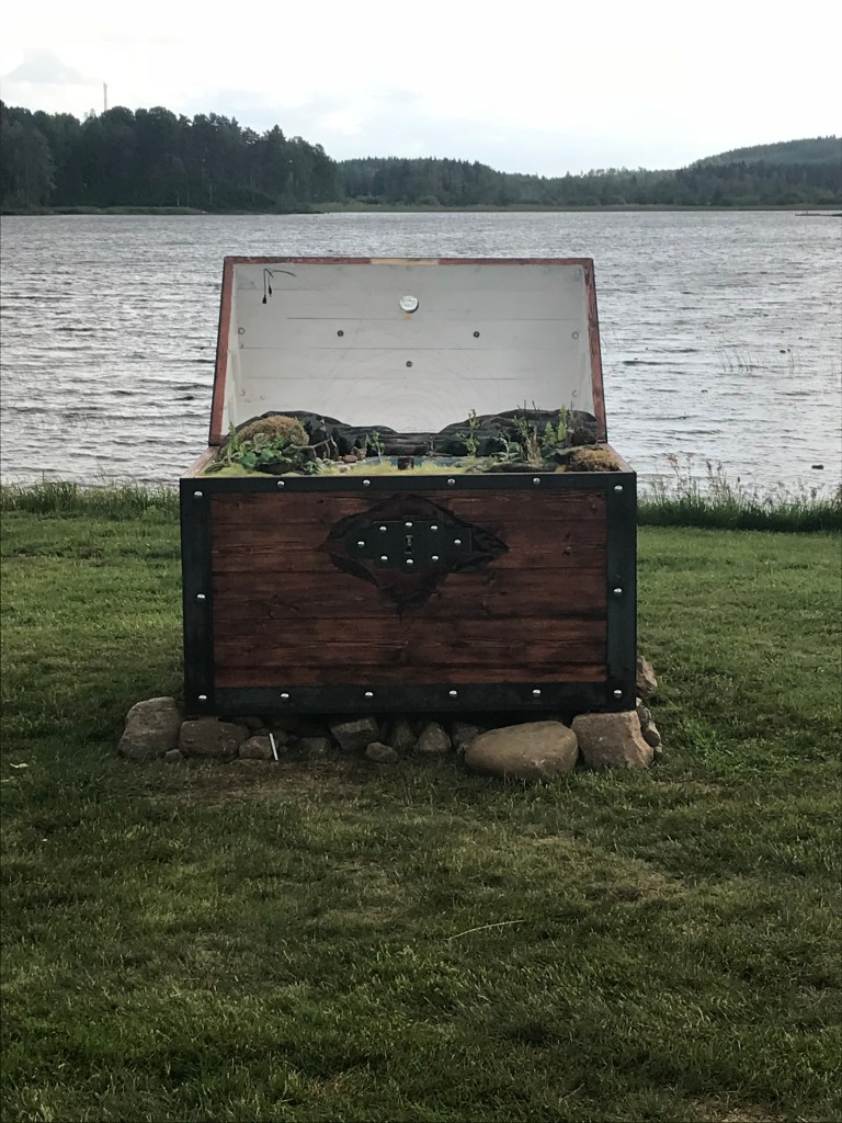 The treasurechest, collaboration with Agust Helgason. X-sites is art along two bicycle tours, sjuhäradsleden and kattegattsleden. This work was located in Tranemo by the Lake