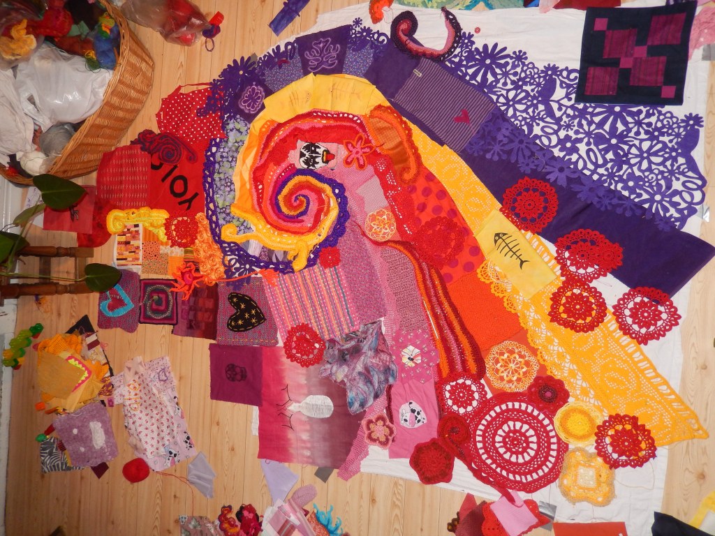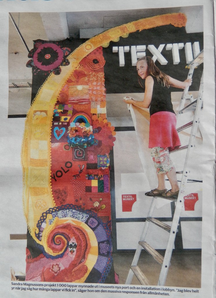 A collaboration with the local population in Västra Götaland where anyone could make and send in a textile patch. These were then merged by me and became the entrance to the textile museum in Borås