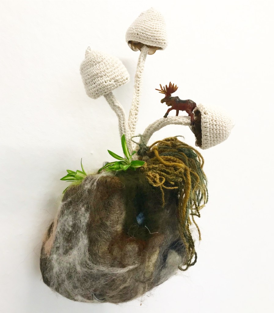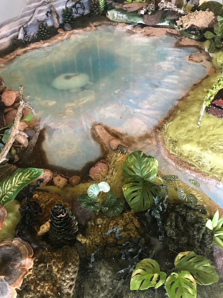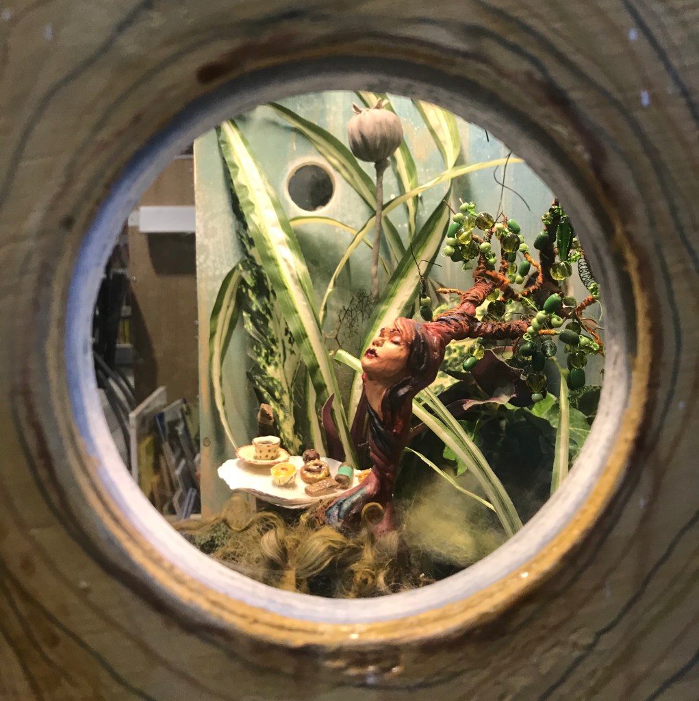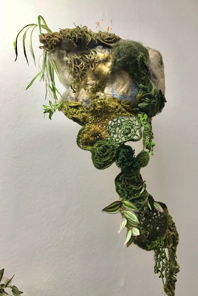 I made two different pieces. One tiny world and one place in the stairway where you are surrounded with hovering stones and moss