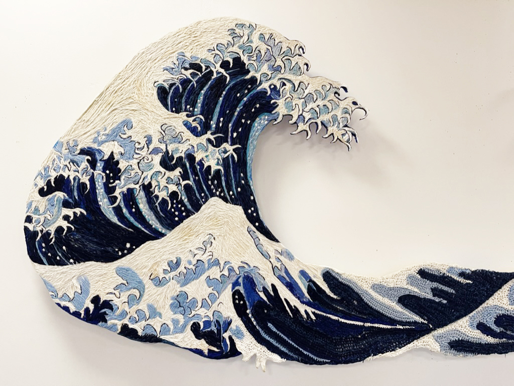 Stand hovering on earth | an embroidered artwork about how we all carrie our own universe inside of us, and that we all need to cooperate on this magic planet