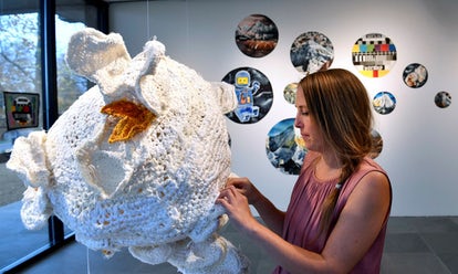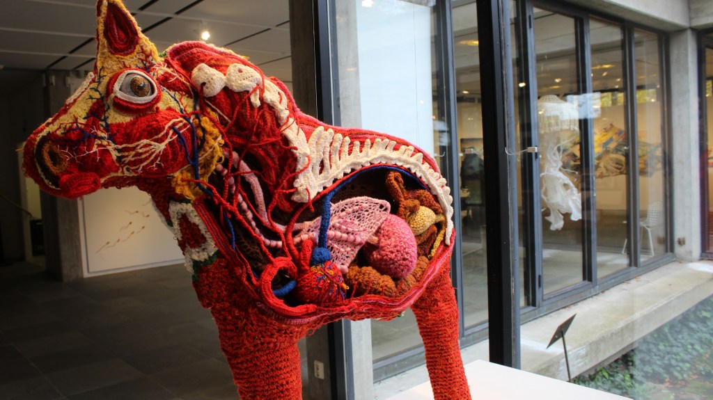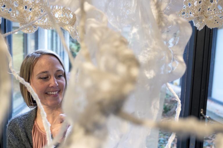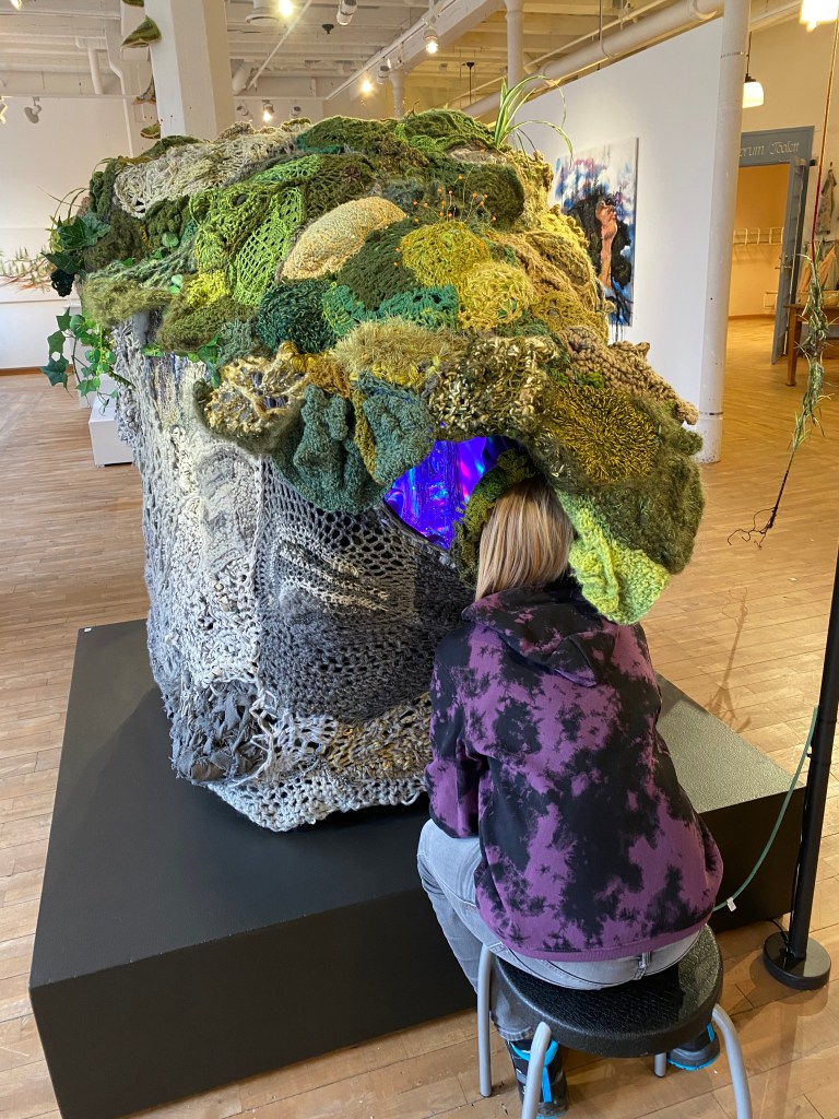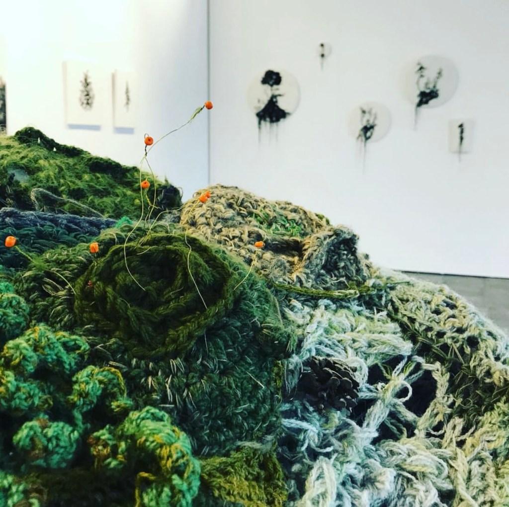 An exhibition with knitted quotes, moss and the eternal mystery of the forest