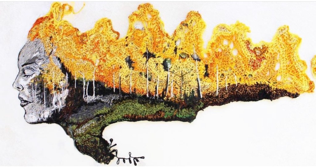 An embroidered and crocheted celebration to the forest, and to all living being.
